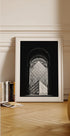 Ein faszinierendes Schwarz-Weiß-Foto der Louvre-Pyramide, eingerahmt von einem gewölbten Eingang, das moderne Glasarchitektur mit der historischen Pracht von Paris vereint. Dieser Druck drückt Kunst, Geschichte und zeitlose Eleganz aus und wird zu einem unverzichtbaren Element in Innenräumen, die von Kultur, Reisen und berühmten Wahrzeichen inspiriert sind.