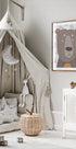 Ein liebenswerter Braunbär steht inmitten eines weichen, nordischen Universums, umgeben von einem klaren Muster aus grauen Blättern und einem Hauch winterlicher Ruhe. Die klaren Formen und warmen Töne verleihen einen verspielten, selbstbewussten Ausdruck, perfekt für Kinderzimmer und gemütliche Ecken. Illustration der Künstlerin Carla Daly. Ein charmanter Hingucker mit sanftem Humor und skandinavischer Schlichtheit.