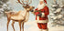 En stemningsfuld vinteraften: Julemanden glider stille gennem sneen med sine rensdyr, omgivet af fyrretræer og dalende snefnug. Det varme lys fra slæden lyser den dybblå nat op og skaber en magisk julestemning, der vækker forventning, nostalgi og hygge i ethvert rum. Granernes silhuetter indrammer scenen, mens snefnug danser.