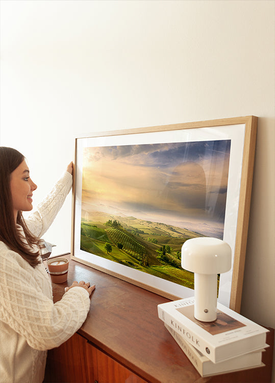 Podere Belvedere's Sunrise von Arnaud BRATKOVIC – Hochwertiges Papier mit glatter, matter Oberfläche und eleganter Haptik. Die matte Oberfläche reduziert Blendungen und sorgt für ein raffiniertes, zeitloses Aussehen. Robust und langlebig für den dauerhaften Einsatz, ideal sowohl für den professionellen Einsatz als auch für dekorative Präsentationen.