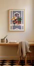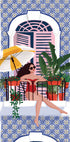 Eine lebhafte Illustration einer Frau, die sich in einem roten Badeanzug auf einem Balkon entspannt, umgeben von üppigen Pflanzen und blau gemusterten Fliesen. Mit Sonnenbrille und Sonnenschirm fängt dieses Kunstwerk die Essenz des Sommerurlaubs und der mediterranen Atmosphäre ein. Perfekt als Wandkunst für alle, die stilvolle, sonnige und urlaubsinspirierte Innenräume lieben.
