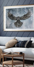 Ein majestätischer Waldkauz schwebt lautlos durch einen winterhellen Himmel, während Schneeflocken um seine breiten Flügel tanzen. Monica Lindbloms Aquarell fängt den intensiven Blick, das frostige Gefieder und die stille Kraft des Vogels ein. Eine poetische Hommage an die nordische Natur, Ruhe und nächtliche Eleganz. Kühle Blau- und Grautöne verleihen dem Motiv Tiefe und Ruhe, was die Stille des Waldes hervorruft.