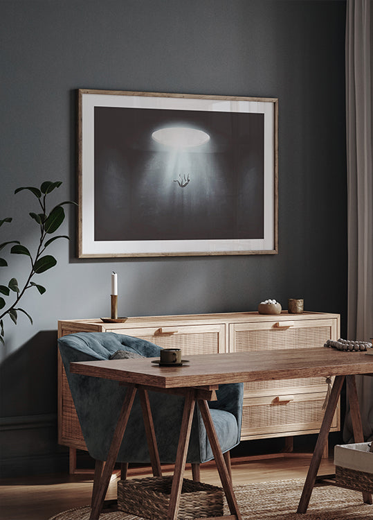 Das Poster „Falling from the Lighthole**“ ist ein fesselndes surreales Kunstwerk, das den Moment des freien Falls ins Unbekannte einfängt. Eine einsame Figur schwebt aus einer Lichtöffnung herab, ein starkes Symbol für Übergang, Besinnung oder Flucht aus der Dunkelheit. Perfekt für moderne Innenräume, Meditationsräume oder als aufmerksames Statement-Poster.
