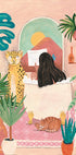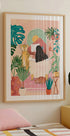 Poster Frau beim Baden im rosafarbenen tropischen Badezimmer