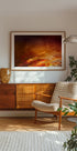Ein flammendes abstraktes Kunstwerk, das Rot-, Orange- und Goldtöne mischt und sowohl an das Fließen von Wasser als auch an die Intensität von Feuer erinnert. Mit malerischen Wirbeln und weichen Texturen strahlt das Stück Wärme, Leidenschaft und Energie aus – perfekt für gewagte Innenräume oder als dramatischer Mittelpunkt.
