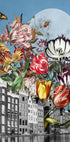 Das Plakat von Marja van den Hurk vereint leuchtende Tulpen und feine Schmetterlinge in einer fantasievollen Collage über Amsterdams Grachten. Klassische Giebelhäuser, Mondlicht und poetische Details schaffen eine verspielte, retro-surreale Atmosphäre, in der Natur und Stadt in farbenfroher, verträumter Harmonie verschmelzen. Eine Hommage an Holland, Tulpen und die Leichtigkeit des Sommers.