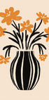 Eine fröhliche und moderne Illustration leuchtend orangefarbener Blumen in einer auffälligen schwarz-weiß gestreiften Vase. Das verspielte Design und die warmen Farbtöne verleihen jedem Raum eine frische, künstlerische Note – perfekt für Küchen, Wohnzimmer oder Galeriewände, die einen Farbtupfer benötigen.