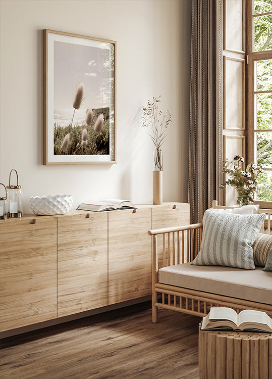 Ein Poster mit weichem Gras in einer Berglandschaft, das jedem Raum eine ruhige und natürliche Schönheit verleiht.