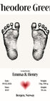 Ein zeitloses, personalisiertes Babyposter mit zarten Neugeborenen-Fußabdrücken und individuellen Geburtsdaten – Name, Datum, Uhrzeit, Gewicht und Größe. Dieses minimalistische und emotionale Wandbild ist das perfekte Andenken für frischgebackene Eltern oder ein aufmerksames Geschenk für eine Babyparty oder als Kinderzimmerdekoration.