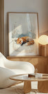 Ein kleiner Rotfuchs liegt zusammengerollt und schläft in einer Decke aus frisch gefallenem Schnee. Fein gepuderte Äste bilden einen ruhigen Rahmen, während sich das sanfte Winterlicht wie ein Schleier über den ruhigen Waldboden legt. Ein poetischer Wintermoment der Wärme und Ruhe – kreiert von Ohkimiko – der die Stille der Natur in den Raum bringt. Der Kontrast zwischen Fell und Schnee verstärkt die Ruhe des Motivs.