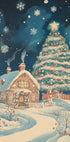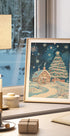 En stemningsfuld vinterby dækket af sne folder sig ud: små huse i dæmpede beige toner, grønne grantræer og bløde snefnug skaber en rolig, nostalgisk julestemning. Den maleriske, retro-inspirerede komposition passer perfekt til stuen eller børneværelset og bringer varm hygge til mørke dage og lange vinteraftener.