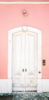 Et stemningsfuldt fotografi af Raisa Zwart fra Lissabon: en skarp hvid dør i en pudderrosa facade, indrammet af klassiske detaljer og solvarme skygger. De blide pasteller og røde accenter fremhæver byens poetiske rytme, hvor stenbelagt gade, patina og sommerlys skaber rolig, urban charme. Perfekt til at bringe varme og farve ind i hjemmet.
