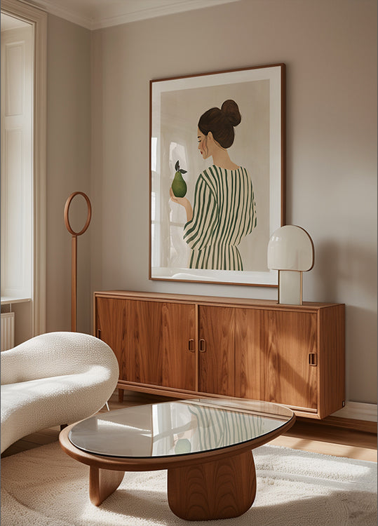 Die Frau und die Birne von Annika Persson – Hochwertiges Papier mit glatter, matter Oberfläche und eleganter Haptik. Die matte Oberfläche reduziert Blendungen und sorgt für ein raffiniertes, zeitloses Aussehen. Robust und langlebig für den dauerhaften Einsatz, ideal sowohl für den professionellen Einsatz als auch für dekorative Präsentationen.