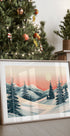 Eine poetische Winterszene, in der Tannen in einer schneebedeckten Landschaft emporragen, während feine Schneeflocken lautlos durch die klare, kühle Luft fallen. Der gedämpfte Himmel und die weichen Konturen schaffen eine friedliche Weihnachtsatmosphäre – perfekt, um Ruhe, Präsenz und nordische Gemütlichkeit ins Zuhause zu bringen. Die Komposition lädt in jedem Raum zur Besinnung und winterlichen Ruhe ein.