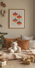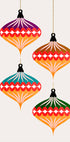 Ein farbenfrohes und verspieltes Stück Weihnachtskunst mit geometrischen Weihnachtskugeln in kräftigen Farben. Mit abstrakten Formen und festlichen Mustern bringt das Design Freude und modernen Stil in die saisonale Wanddekoration, perfekt für Weihnachtsfeiern.