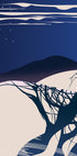 Eine stille Winternacht entfaltet sich: Schlanke, kahle Bäume zeichnen sich dunkel vor einem tiefen Sternenhimmel ab, während ein großer Mond über fernen Bergen aufgeht. Japanisch inspirierter Minimalismus trifft auf verträumte Atmosphäre in einem Motiv, das Ruhe, Geheimnis und kosmische Poesie in Einklang bringt – perfekt als meditativer Blickfang.