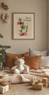 En vaklende, legende stabel julegaver balancerer i sneen, formet af grafiske figurer og lyse farvefelter for et friskt, nordisk udtryk. Et strejf af retro-folklore og vinterglimt gør motivet både festligt og hyggeligt. Ideel til at tænde julestemningen i hjemmet. Minimalistisk og farverigt i skandinavisk ånd. Skabt af Annick.