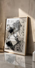 Ein beeindruckendes Schwarz-Weiß-Foto von Yves Saint Laurent-Parfums, elegant platziert auf einem Rosenbett. Das unverwechselbare YSL-Logo, das elegante Design und der florale Hintergrund schaffen eine perfekte Harmonie aus Luxus und Romantik und machen diesen Druck zu einer raffinierten Wahl für Innenräume, die von Schönheit, Mode und zeitloser Eleganz inspiriert sind.